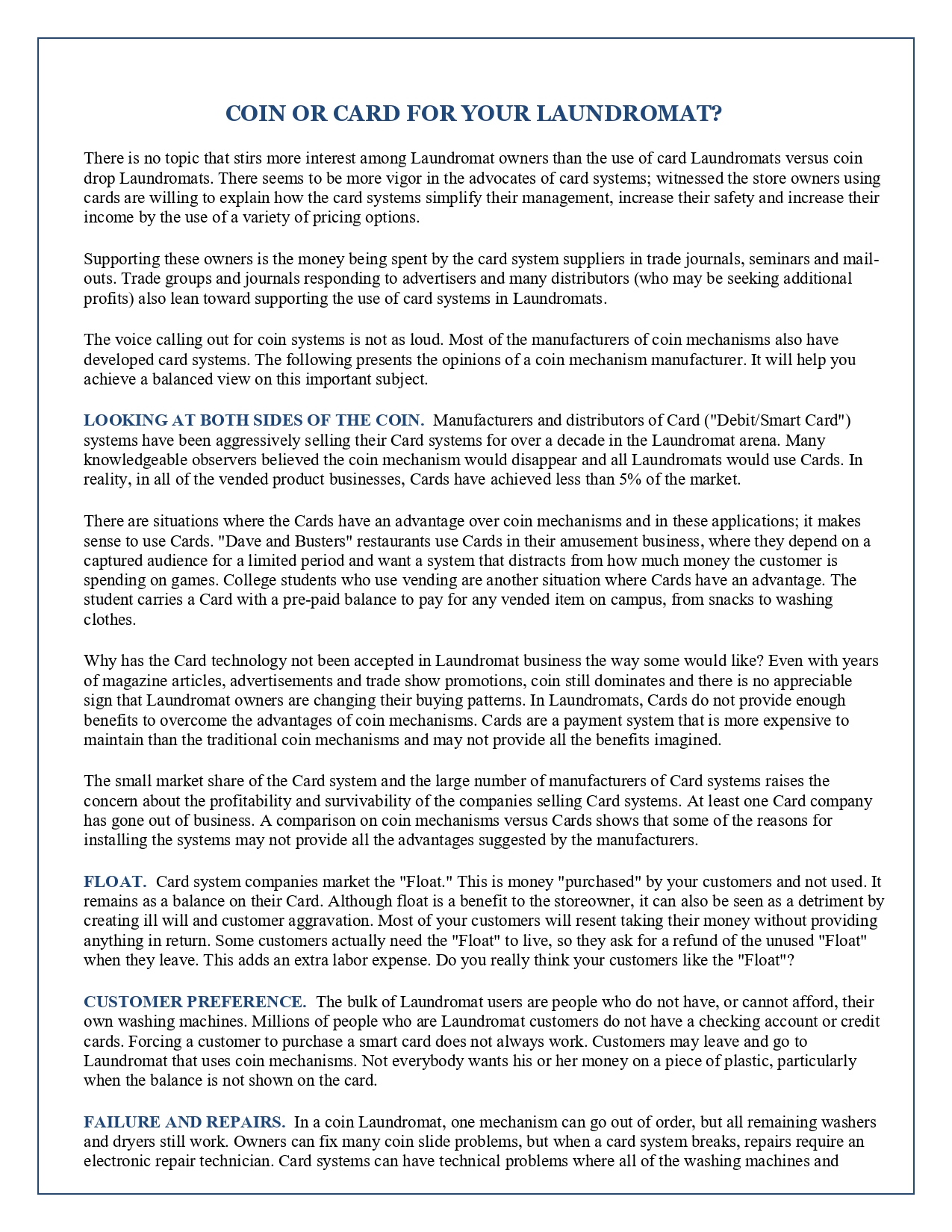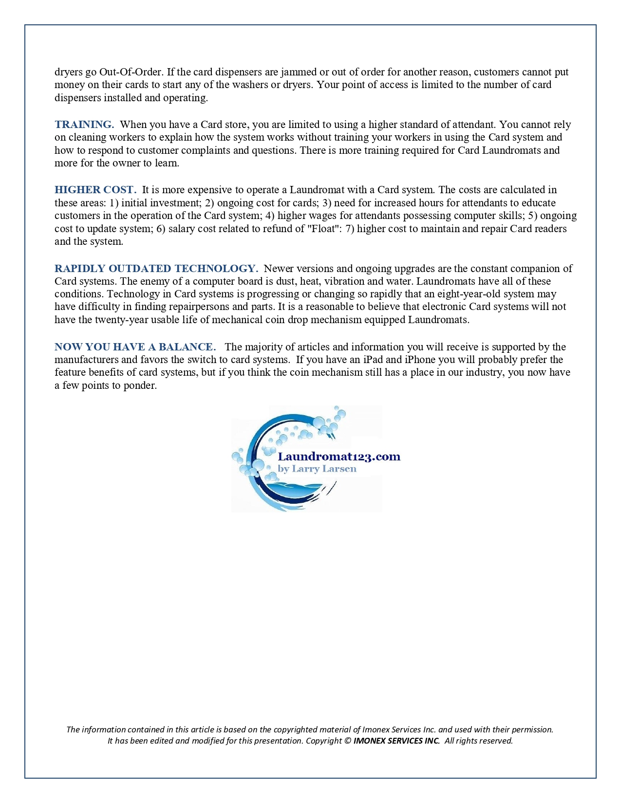 "Larry Larsen saved me a lot of money. He's the best expert in the Laundromat business." Linda Wilkie